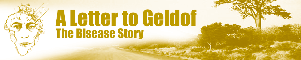 Geldof’s presence in Ajumako-Bisease was a result of prior planning by researchers and production team members who had been in touch with Nana Okofo Kwakora Gyan III between March 2003 and September 2004. During this time Nana Okofo Kwakora Gyan III had asked if Geldof would become his Chief of Development. Geldof accepted. Nana Okofo Kwakora Gyan III believed that Geldof would be an ideal Chief of Development for his region as he had already done a lot for Africa. In September 2004 a special durbar (or festival) was organised for the enstoolment of Sir Bob Geldof as Chief of Development, complete with special permission from the Ministry of Education for all school children to take the day off school. On a Friday, in the presence of the whole town, Nana Okofo Kwakora Gyan III crowned Geldof Chief of Development and Geldof made his acceptance speech. He was now Chief of Development of Ajumako-Bisease - Nana Kofi Kumasah I. Geldof constructs a very different version of events, in which his car breaks down in the middle of nowhere, he stumbles upon a town called Ajumako-Bisease where he meets John, the town’s chief and is made their Chief of Development.