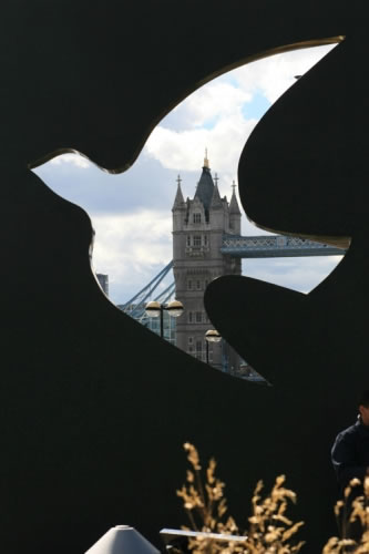The World War Two memorial garden was built in memory of East London civilians killed in the Blitz, during the Second World War. This was when the Germans, realising the importance of the docks for British trade and industry heavily bombed this area. A sculpture symbolizing the dove dominates the memorial garden, representing hope for the future. The shape of a dove is cut into a black background expresses absence and remembers the loved ones who were lost in the war.