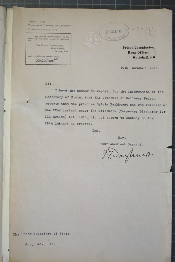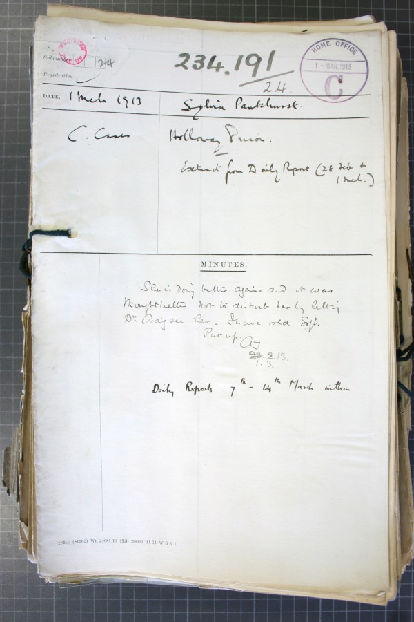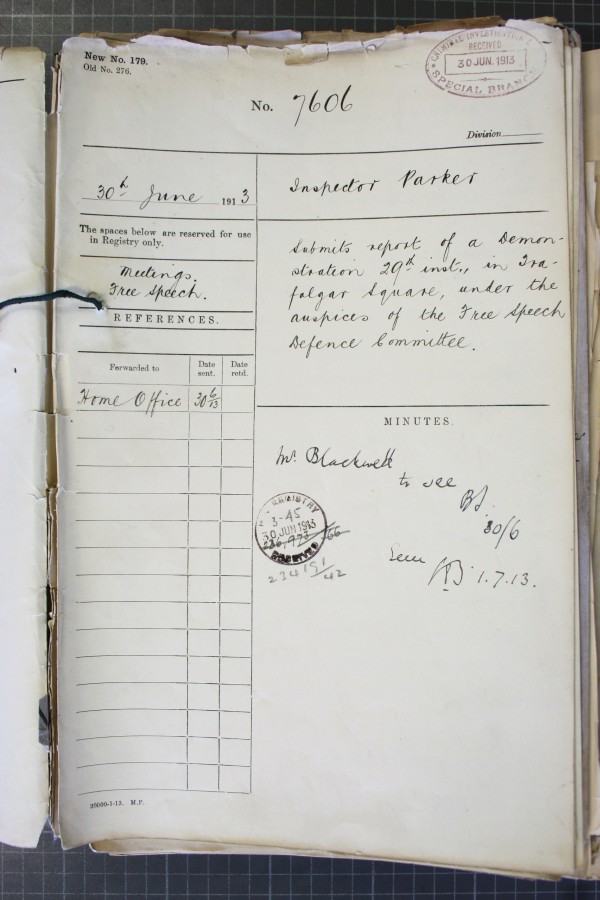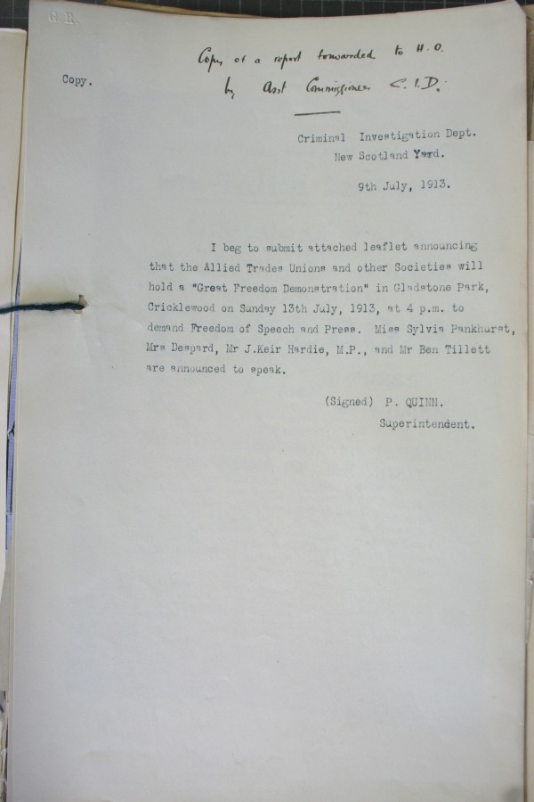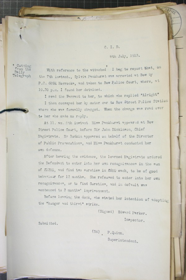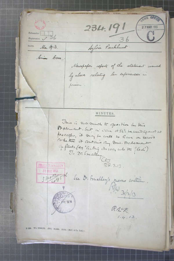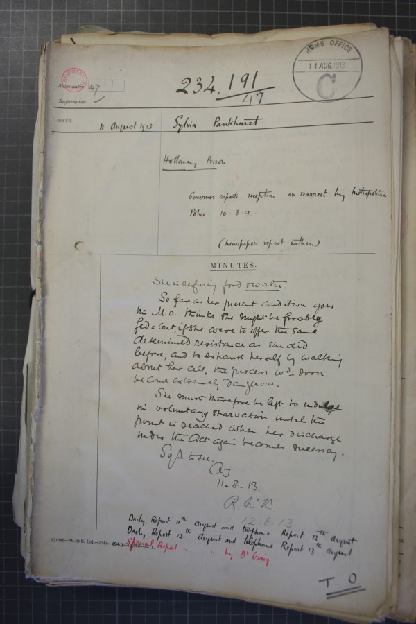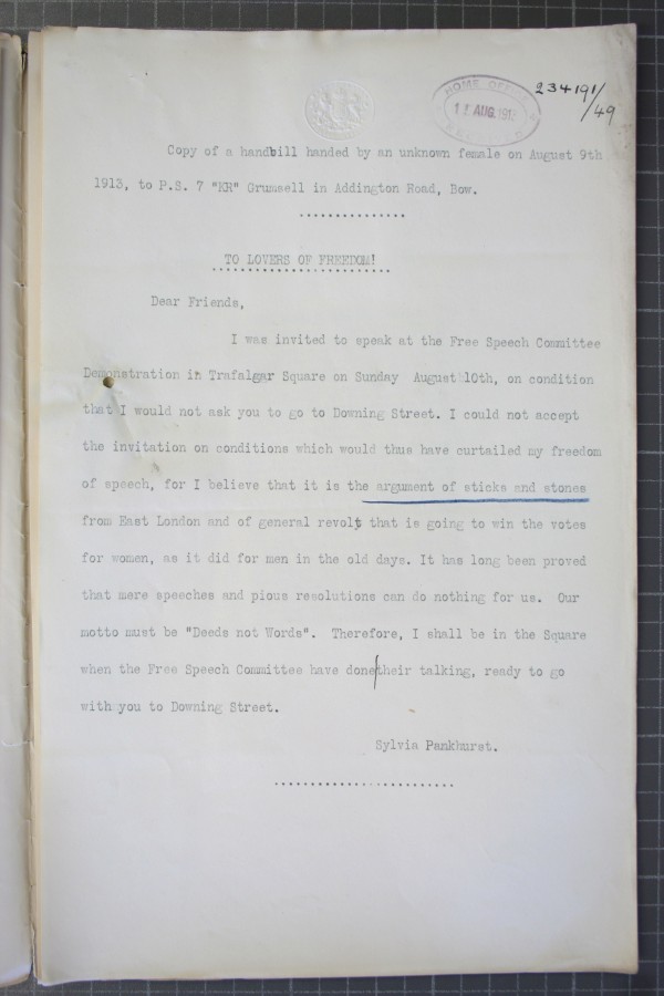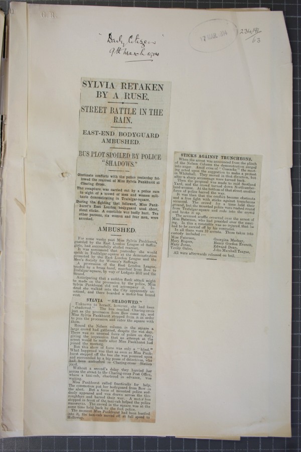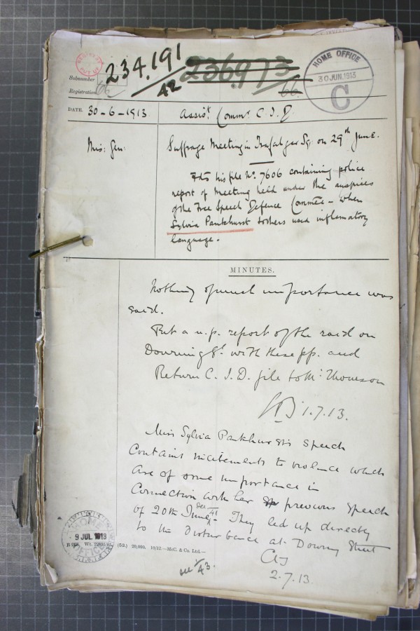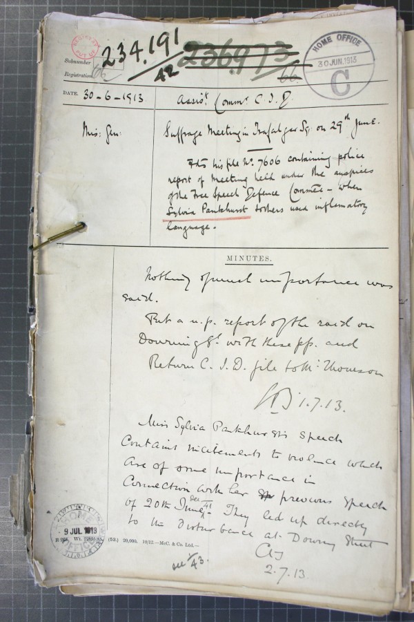 The National Archives at Kew hold numerous ‘security items’ on Sylvia which were eventually released for public viewing. The National Archives kindly allowed our volunteers to photograph many items. These documents demonstrate the impact she was having on the British establishment at the time, the fear she invoked, their efforts to silence her and her fearlessness in taking on the state. Some material is included in the documentary, but we could not include it all and these items we felt were important for the world to see and so present the most legible here. There are further files on Sylvia now released by MI5 and many more items from cabinet papers to correspondence so this is by no means an exhaustive collection.